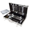 This 24 Pc Executive BBQ set includes: Grill Brush, Tongs, Spatula, Basting Brush, 2 Skewers, Bbqknife, Bbq fork, 6 Corn Holders, 4 Regular Forks, 4 Steak Knives, Salt and Pepper Shakers, Metal Edged Case with Carry Handle Weight: 156oz